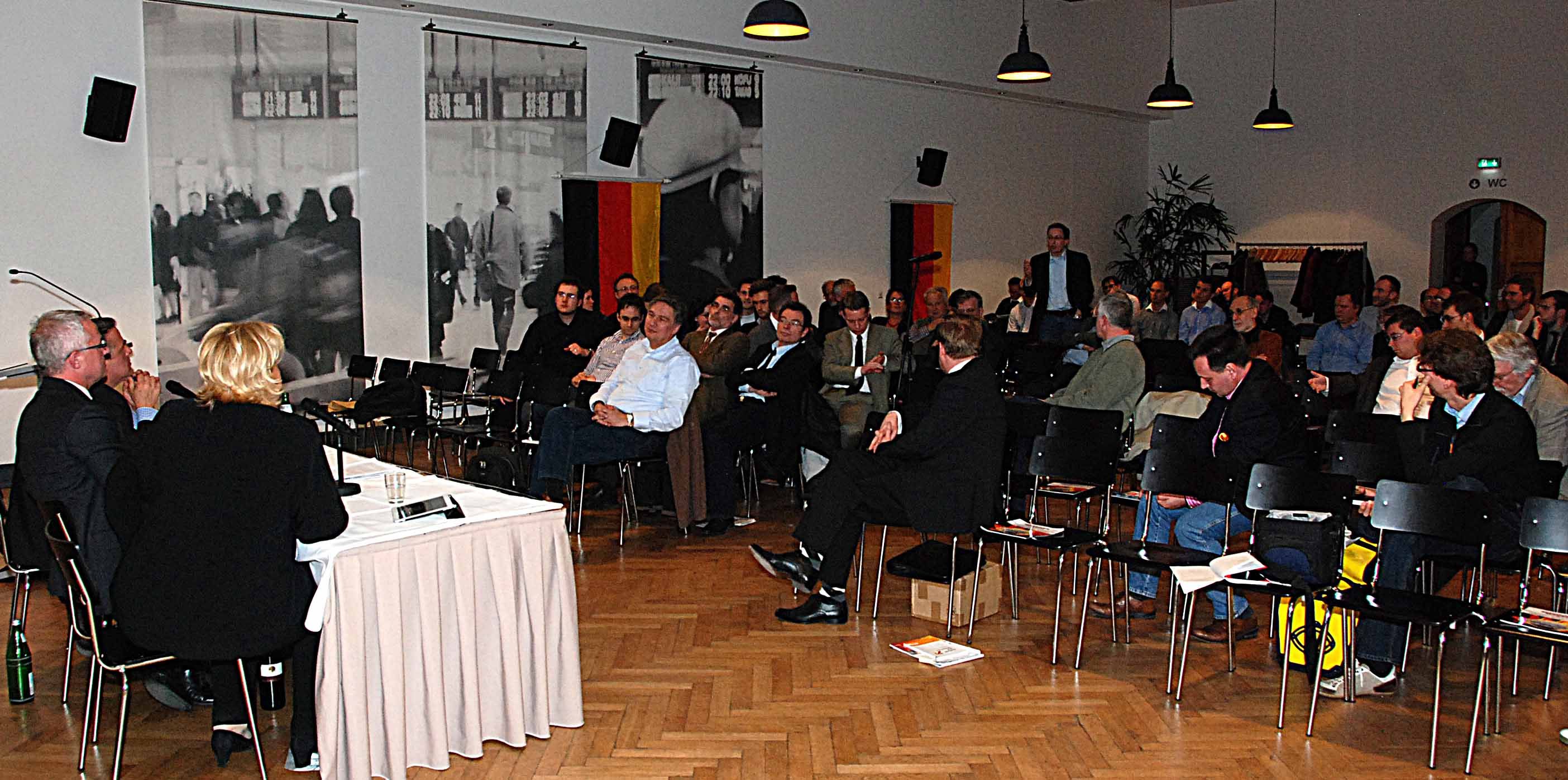 ... am Beginn der Diskussion die beiden Haushaltspolitikern Stefanie Vogelsang, MdB und Klaus-Peter Willsch, MdB unter der Moderation des amtierenden Vorsitzenden der CDU Pankow, Peter Kurth, ihre Positionen vor. Während Stefanie Vogelsang die Haltung der Bundesregierung und CDU/CSU-Fraktion verteidigte, verwies Klaus-Peter Willsch auf die Risiken des Euro-Rettungsschirms. Eine kontroverse Debatte mit dem anwesenden Publikum schloss sich an die Ausführungen der beiden Referenten an. Die Wichtigkeit der europäischen Einigung wurde dabei nicht bestritten. Allerdings traten unterschiedliche Meinungen über die ökonomische Sinnhaftigkeit des eingeschlagenen Weges auf. Zum Abschluss fasste der Bezirksstadtrat, Dr. Torsten Kühne, die Diskussion noch einmal kurz zusammen und dankte den anwesenden Referenten und Gästen insbesondere dem Organisator der Veranstaltung, Stefan Friedrich. Im Anschluss an die lebhafte geführte Diskussion wurden die Gespräche bei einem Glas Wein fortgesetzt.